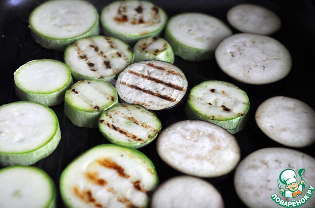 В домашних условиях овощи (без масла) обжариваем на сковороде-гриль.