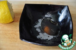 Смешиваем сок лимона, бальзамический уксус, свежемолотый чёрный перец, соль, соевый соус, оливковое масло. -