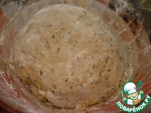 Присыпаем мукой, чтобы укроп не сгорел при выпечке.