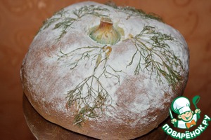 Подошедшую буханочку украшаем мокрыми веточками укропа.