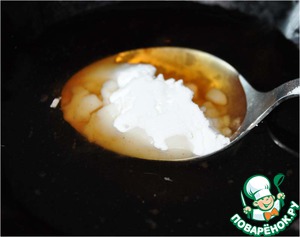 К терияки маринаду добавить воду, сахар, херес, рисовый уксус, табаско, крахмал. Перемешать.