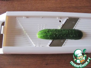 Огурцы помыть и натереть на такой тёрке Бёрнер. У меня из огурца вышло 6 целых пластинок.