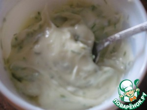 Сливочный сыр перемешаем в пиалке с укропом, солью и перчиком.