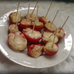 [+5]Я делала с помидорками черри и проткнула деревянными шпажками - получилось что-то вроде канапе.