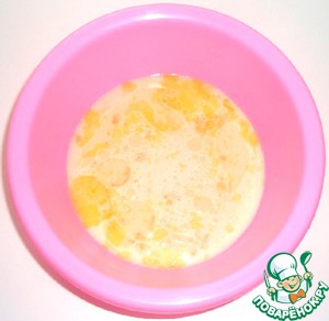 В теплом молоке растворяем дрожжи с сахаром, затем добавляем соль, растопленное сливочное масло, яйцо и перемешиваем.