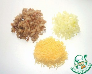 Филе сельди и лук нужно мелко нарезать, сыр натереть на средней тёрке для второй начинки.