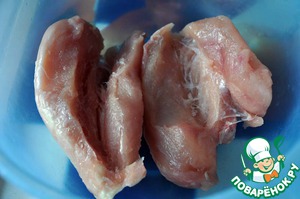Куриные грудки освобождаем от костей и "разворачиваем".