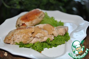 Маринованные грудки "фаршируем" кинзой, имбирём и чесноком из маринада.