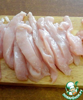 Куриное филе нарезать полосками
