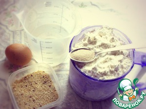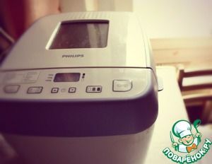 В тефлоновую форму закладываем: воду, растительное масло, сахар, соль, просеянную муку, сухие дрожжи.
