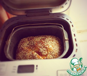 • Ставим в хлебопечку на режим французского хлеба. Оставим хлеб готовиться. За час до конца программы смажем поверхность теста желтком и посыплем кунжутом. Все просто!)