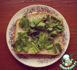 Ингредиенты подготовлены: хлеб остыл, салат помыт и обсушен, начинка перемешана.