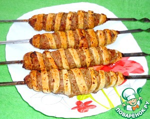 Рецепт «Нетрадиционный "люля-кебаб" в слоёном тесте с сюрпризом внутри»: