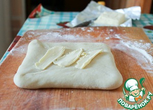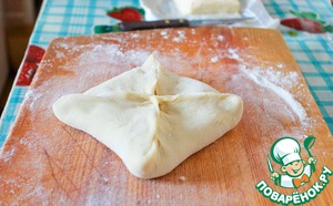 Сворачиваем тесто конвертиком, загибая углы вовнутрь.