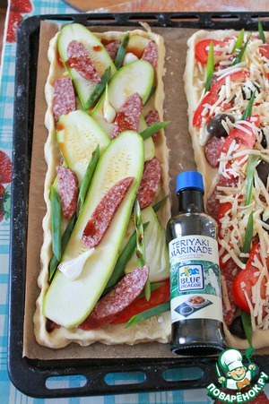 Лук репчатый нарезала соломкой, полила соусом терияки. -