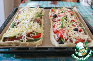 Такой порционный способ выкатывания слоёного теста удобен тем, что тесто потом не надо разрезать, и масло при готовке не вытечет.