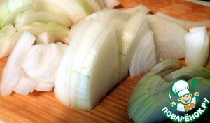 порежем тем временем лук четьверть-кольцами и натрём на крупной тёрке морковь (у меня была морковь уже тёртая - замороженная). -
