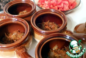 Ставим горшочки в холодную духовку (крышечки нам не пригодятся). Выставляем 200°C, нагрев только нижнего тэна (нам не нужно преждевременного подрумянивания картофеля).