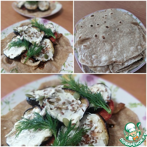 Посыпать доску пшеничной мукой. Тесто разрезать на четыре части. Каждую раскатать в тонкую лепешку. Жарить на сухой сковородке по минуте с каждой стороны.