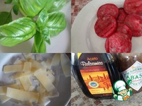 - Помидор (помидоры берём разных сортов, чтобы они красиво смотрелись в салате) — 500 г