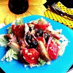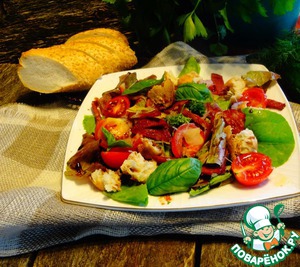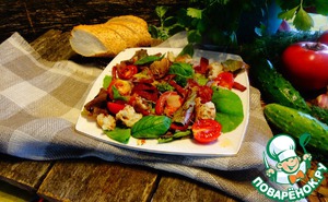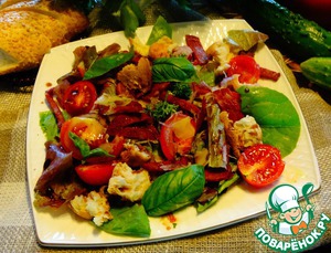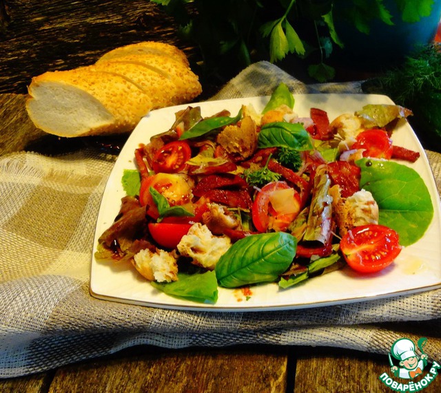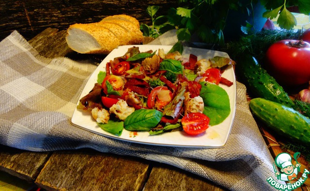 Описание: Пока у нас готовится мясо или другая основная закуска к пикнику, предлагаю приготовить ещё очень вкусный и полезный салат из свежих овощей почти по рецепту Джейми Оливера.