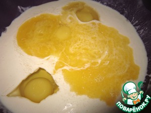 Добавить яйца, масло, оставшуюся сахар и соль.