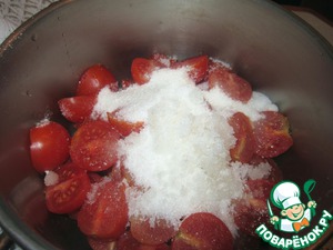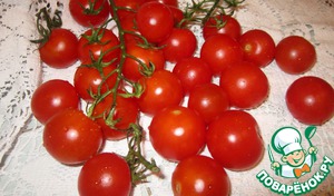 Помидоры вымыть, дать высохнуть, затем разрезать пополам.