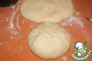 - Тесто дрожжевое (ваше любимое, у меня ночное) — 400 г