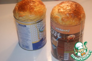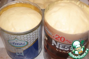 Тесто обмять, сформовать в булочки диаметром чуть меньшим, чем диаметр формы. Я использовала банки от растворимого кофе. -