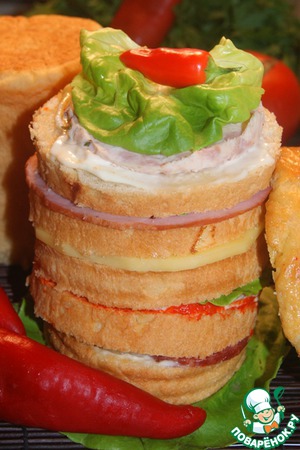 Ну, конечно же, не настоящая, а в виде слоеных тостов, а вы что подумали?! Мне очень нравится этот вид сборки и подачи тостов, удобно и на столе, и на природе. В качестве прослойки-наполнителя можно использовать сыр, ветчину, салями, нарезку собственного приготовления, любую рыбу или морепродукты, в общем, все, что вы любите и предпочитаете. То же самое касается соуса - красный или белый, острый или сладкий - огромный полет для фантазии, а главное - это очень компактно, вкусно и аппетитно смотрится!