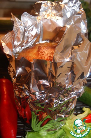Накрыть срезанной крышечкой и завернуть в фольгу.