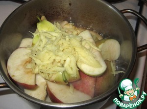 Нарезать кусочками яблоки вместе с кожурой и семечками., натереть имбирь.