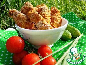 Идеальный вариант для пикника! Курица получается очень хрустящей, но в то же время сочной и нежной! Да ещё и без фритюра! Прекрасно съедается детьми, да и взрослыми тоже!