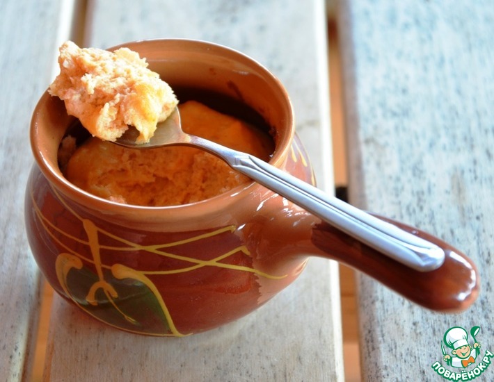 Массу разложить в формочки, поставить их в противень. Готовить на водяной бане в разогретой до 180 градусов духовке около 25 минут. -