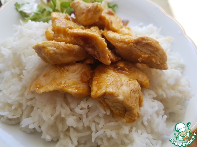 Кушать хочется - готовить некогда... В холодильнике лежит копченая куриная грудка. Лук, чеснок, кетчуп и майонез попались под руку. Получилась вот такая курочка.