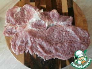 Аккуратно отбивая мясо молоточком с двух сторон, я старался максимально увеличить площадь этих кусочков мяса. Закончив отбивать, обсушил филе кухонной салфеткой.
