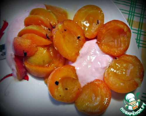 На фото практически весь, не хитрый, состав нашего десерта)) У меня мелкие абрикосы, поэтому я взяла по 3 шт. на порцию, если абрикосы крупные, достаточно и 1 или 2х штук.
