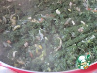 Добавить размороженный шпинат и продолжить тушить еще 4 минуты. |