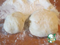 Отделяем от теста третью часть для того, чтобы закрыть пирог. |