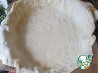 Большой шар теста раскатать в пласт и застелить форму и борта. |