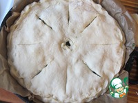 Маленький шар теста раскатать в пласт и накрыть пирог. Края защипать,