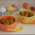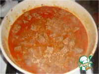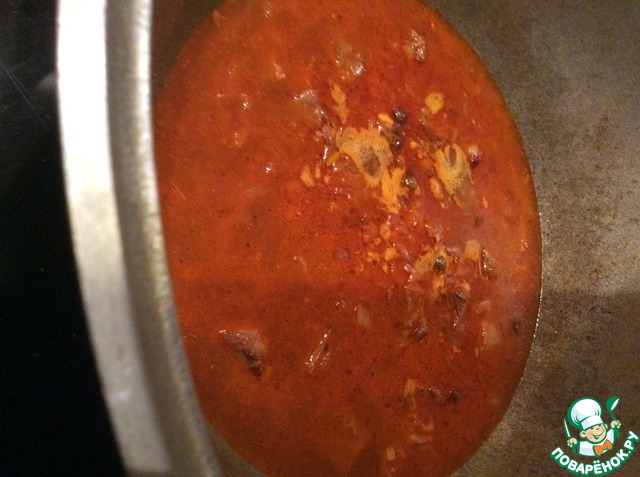 Добавляем горячую воду и тушим 2 часа (по мере выкипания подливаем воду)
