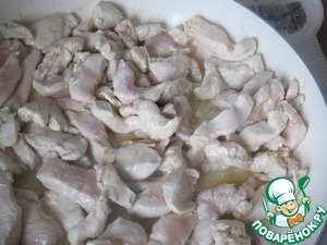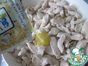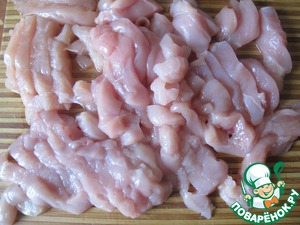 Куриную грудку нарезать полосками.