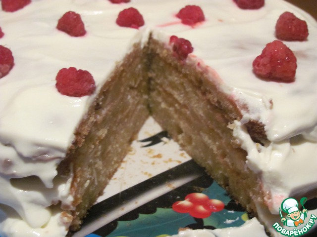 Смазываем кремом: 500 гр сметаны взбить с 0.5 ст. сахарной пудры.