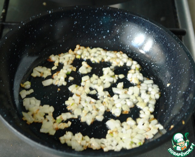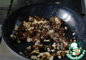 Так как у меня в данном случае грибы консервированные, то я сначала обжариваю лук почти до готовности, если же грибы свежие, то обжариваем сначала грибы.