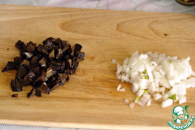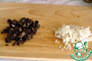 Лук и грибы нарезаем некрупными кубиками (не больше 0,5 см.)