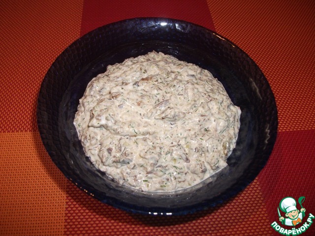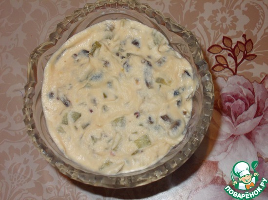 Добавляем их в наш соус, если соус получается густой, то можно еще добавить немного маринада от корнишонов, мне в данном случае этого делать не пришлось.