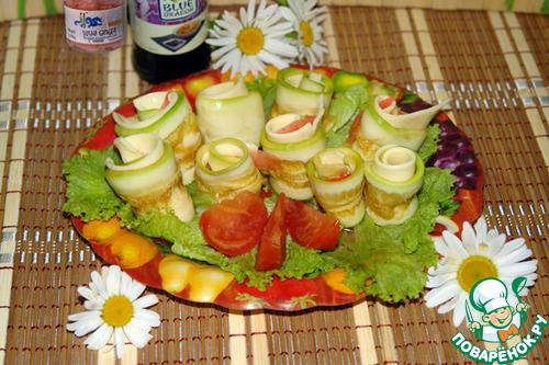 Рецепт «Закусочные рулетики из кабачка с сыром»: