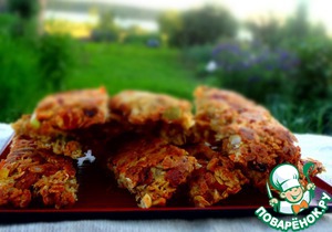 Выложить эту смесь в форму размером 20х20, разровнять и плотно прижать. Поставить в духовку, нагретую до 180град. С на 20-25 мин. Когда немного подрумянится, вытаскивать.