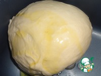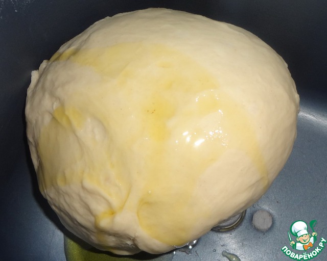Замесите тесто из молока с разведёнными дрожжами, сахара, соли и муки. Когда тесто немного поднимется, добавьте к нему 2 ст. л. оливкового масла. |